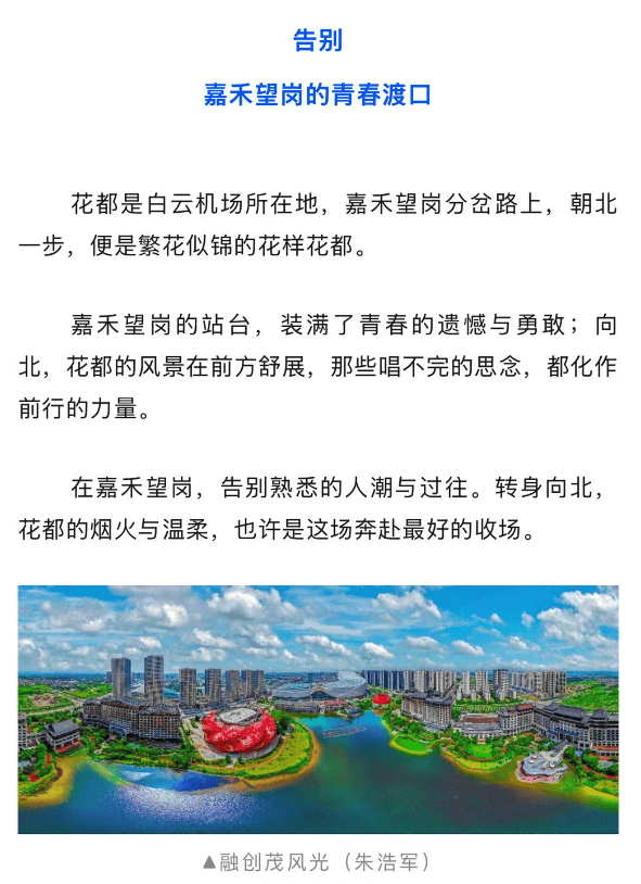 白云机场所在地@广州花都发布喊话:嘉禾望岗,向北一步,花样花都。风景在前方舒展,唱不完的思念都化作前行的力量。